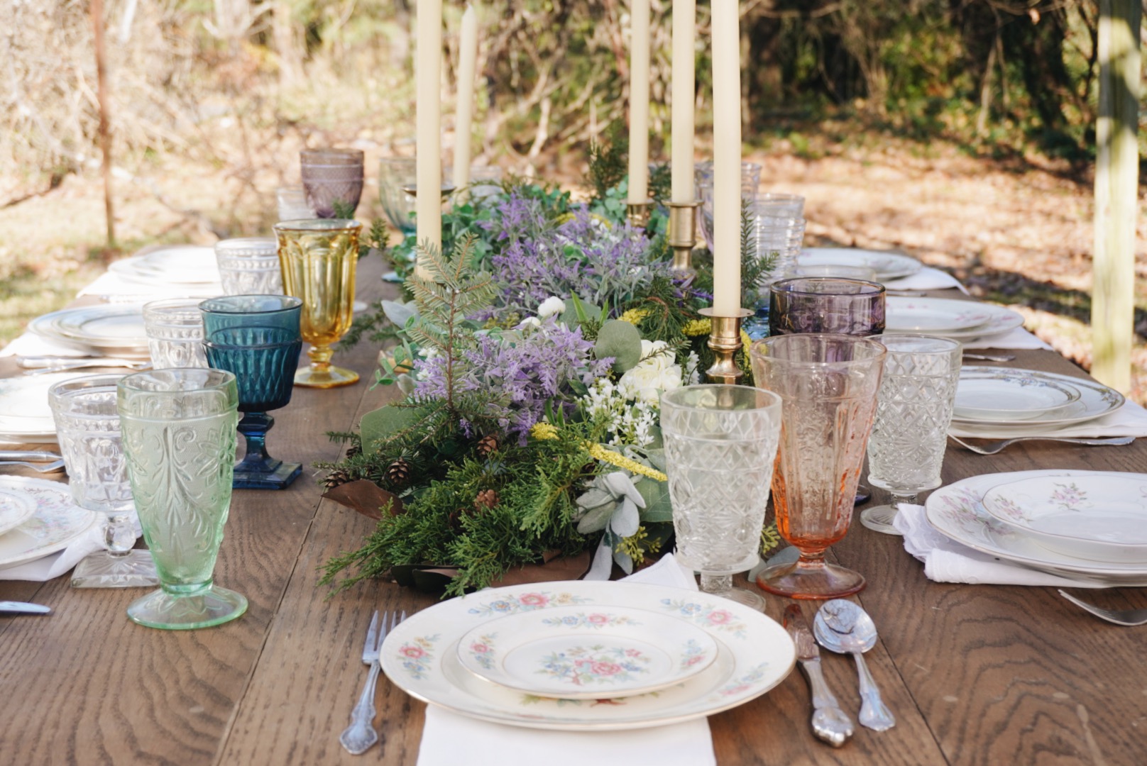 Our unique, vintage brass candlesticks can help put that finishing touch on your tablescape for your special event. We offer a variety of heights and styles.
